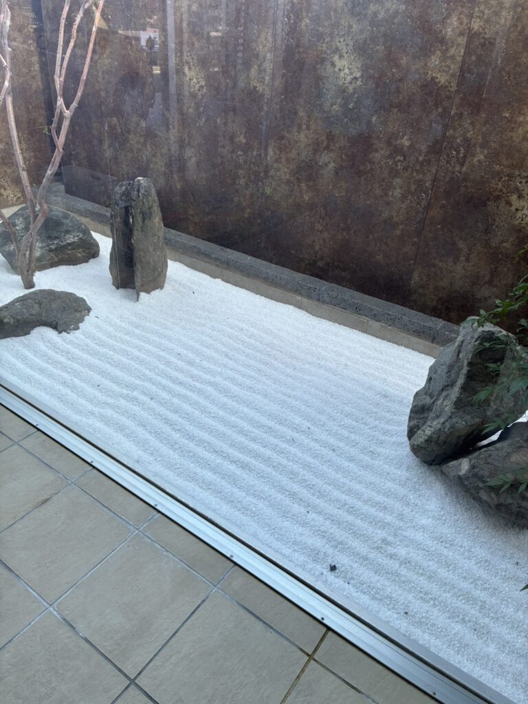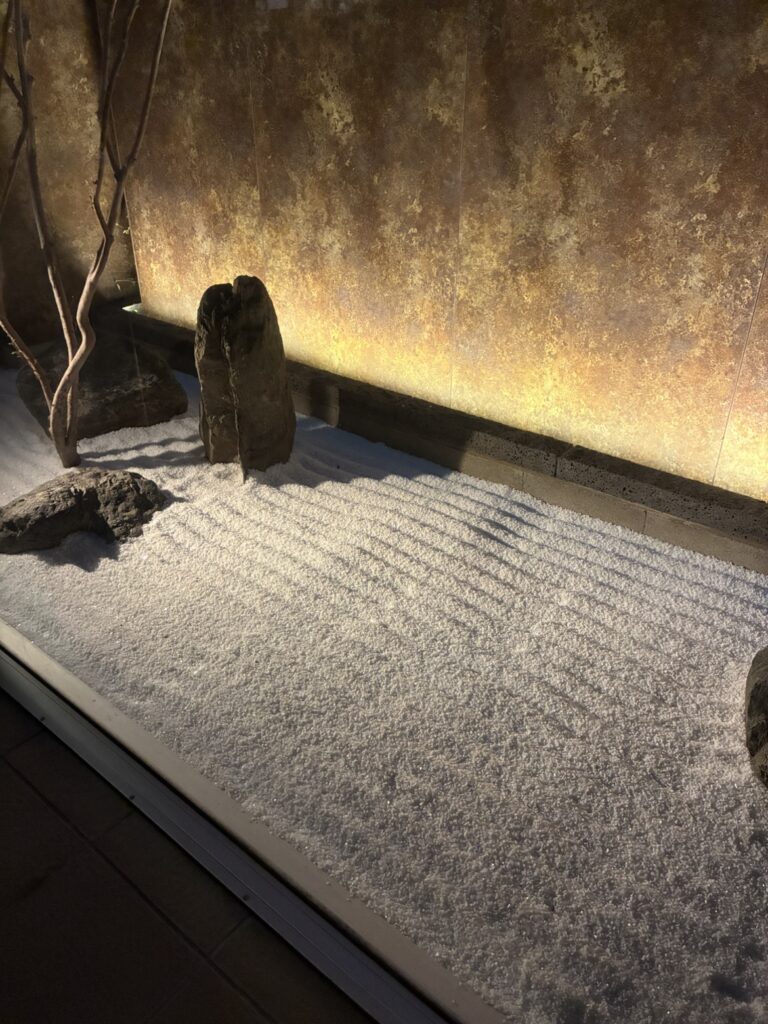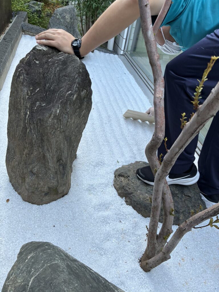 2025.11.10 庭師×リハビリ師 お知らせ 正直家の職員は介護や、リハビリ以外にも仕事があります。 この日は庭師になって枯山水に模様を入れました。夜のライトアップされた雰囲気はなかなか趣があります。