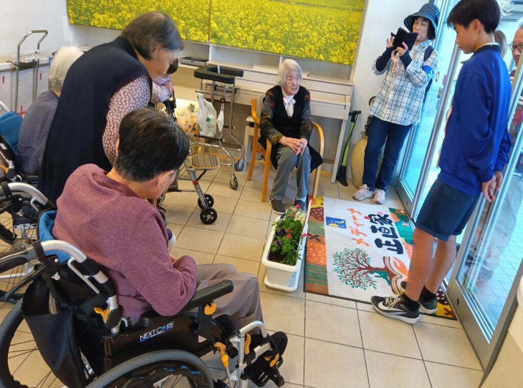 2025.10.25 笑顔の花も咲きました! スタッフブログ 今日は「中学生地域交流推進事業」の一環で、西原中学校の生徒さんたちが自分たちで育てたお花を持ってきてくださいました🥰「春になったらチューリップも咲きます🌷」との言葉に「生きる望みができたね!」と笑顔の花が咲きました😊